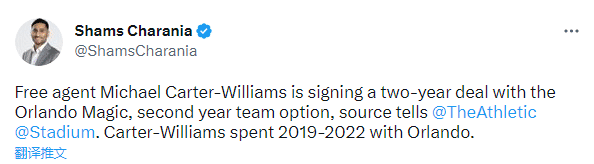 据名记Shams报道,迈卡威与魔术签下的是一份两年合约,且第二年为球队选项。