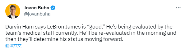 湖人赢球却也有令人担忧的事情,詹姆斯的脚踝伤势如何?赛后湖人主帅哈姆表示到目前为止,詹姆斯的身体很好,湖人队医正在为他做检查,湖人将在明天更新他的情况。