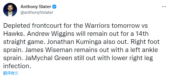勇士全队6名球员因伤缺战老鹰,前场阵容破败不堪,维金斯因病连续第14场缺席比赛,库里距离复出还需要一段时间,另外勇士又添伤员,库明加右脚扭伤也无法出战,本赛季库明加为勇士打了33场比赛,场均拿到7.5分3.2篮板1.7助攻,最近一段时间,库明加的表现还是不错的。