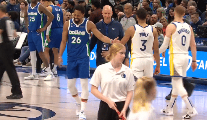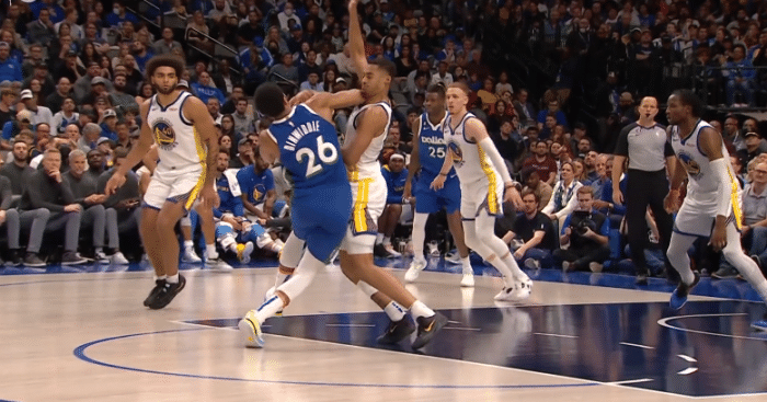 来源:JRS低调看直播11-30 13:25JRS低调看直播11月30日,NBA常规赛独行侠对阵勇士,第四节场上发生意外事件,丁威迪肘击普尔的下巴吃到二级恶意犯规,直接被驱逐离场。