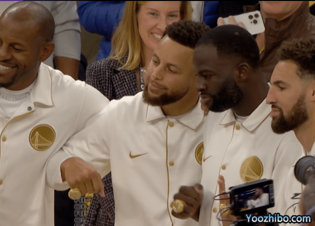 勇士正式领取冠军戒指:库里压轴亮相戒指曝光 众人合影湖人新援抢镜