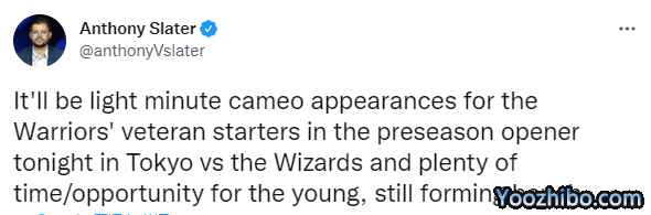来源:JRS低调看直播10-01 10:36JRS低调看直播10月01日讯 ,NBA季前赛就要来了,勇士将在东京和奇才打响季前赛揭幕战,卫冕冠军的首战计划曝光,据名记Anthony Slater报道,库里、汤普森等勇士老将首发出战,但仅是短暂的客串出场,队内的年轻球员将获得充足的上场时间和机会。