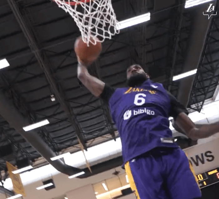 湖人训练赛曝光:詹皇暴扣威少单防贝弗利 名嘴力挺浓眉争夺MVP