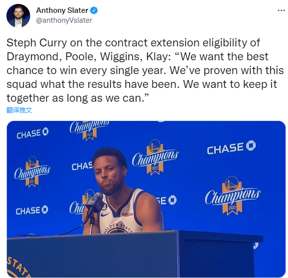 新赛季勇士开启卫冕赛季,但与三大核心的续约问题将让管理层有些头疼,因为他们面临巨额奢侈税;对于球队与格林、汤普森、普尔和维金斯的续约问题,库里发话并且表示:我们希望每年都能得到最好的获胜机会。我们这个阵容已经证明了我们的实力,我们盼望能够尽可能长时间并肩作战。