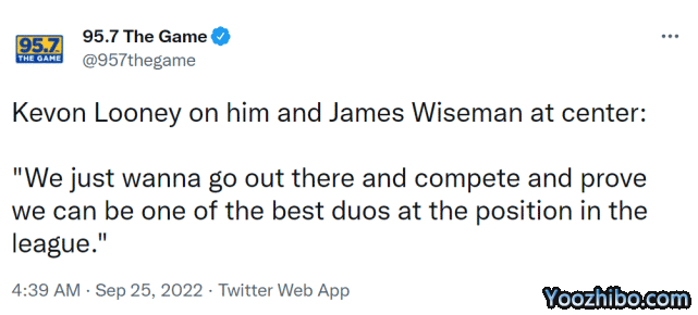 谈到了自己和怀斯曼的1v1训练,卢尼说:“我们只是想上场比赛,去证明我们是联盟中最强的中锋二人组之一。”谈到今天的训练赛,卢尼表示冠军老兵们统治了今天的训练赛。“库里和维金斯今天投进了很多球。”
