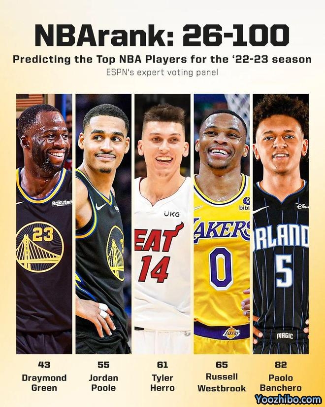 来源:JRS低调看直播09-24 22:14JRS低调看直播09月24日著名NBA媒体ESPN评出了一年一度的NBA新赛季百大球员,今日放出了100-26的球员,具体排名如下: