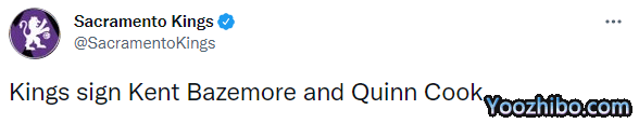 国王官网写道,据总经理麦克奈尔透露,国王队已经正式签下了贝兹莫尔和奎因-库克。根据球队政策,合同细节未披露。
