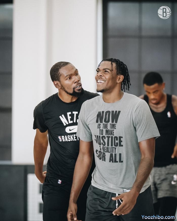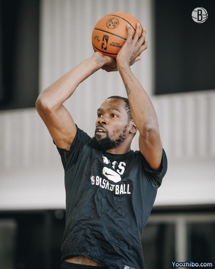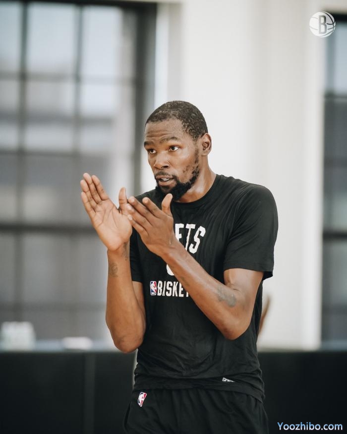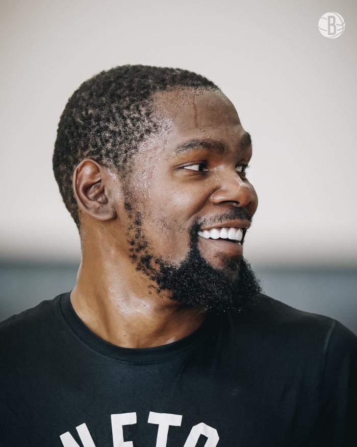 篮网官方宣布:杜兰特正式归队训练 满脸笑容冲小弟喊话表情抢镜