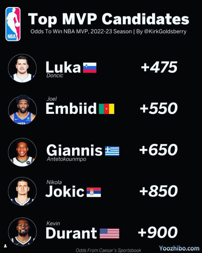 最新MVP赔率出炉:东契奇第一国际球星包揽前四 杜兰特排名第五