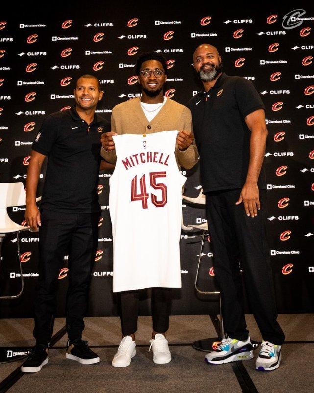 米切尔手持45号球衣亮相!因詹姆斯成骑士球迷 承认曾想去尼克斯