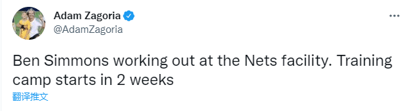 篮网记者Adam Zagoria报道,除了本-西蒙斯正在球队训练中心训练,球队训练营将在两周后开始。