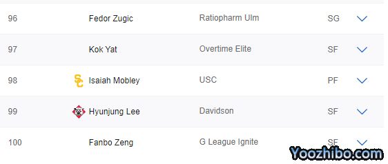 来源:JRS低调看直播05-25 16:04JRS低调看直播05月25日讯 ESPN官方网站最近更新了TOP100新秀排名,曾凡博差一点没上车,位列第100名。实属正常,毕竟退出了联合试训。