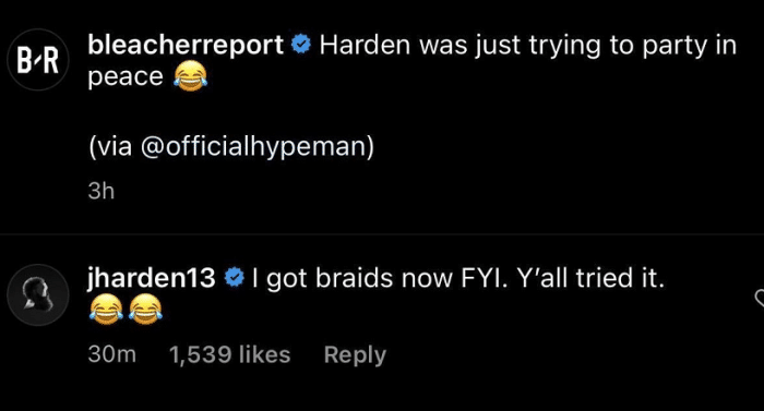 很快哈登就亲自站出来辟谣澄清,他表示:“提醒一下,我现在是辫子发型呢。你们真是费尽心思啊。”