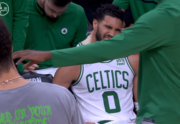 首节比赛,凯尔特人18-1梦幻开局,期间塔图姆强硬突破上篮,反击中上演空接暴扣以及不断造杀伤罚球得分,单节5投3中拿到12分5篮板2助攻,带队第一节29-11打爆热火,一个人得分超热火全队;塔图姆因右肩不适,坐在替补席接受临时治疗。