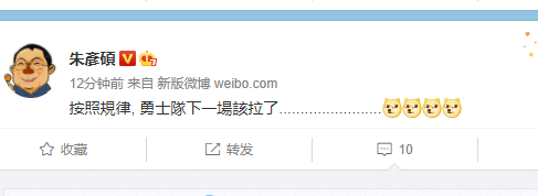 知名篮球记者朱彦硕也发文调侃勇士,称:“按照规矩,下一场勇士该拉了”