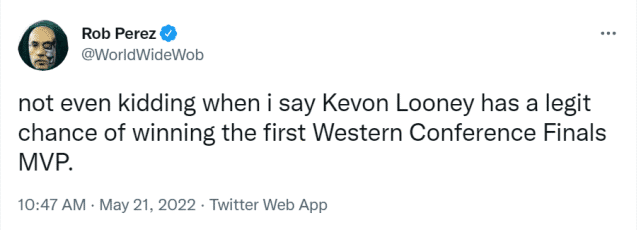 来源:JRS低调看直播05-22 15:32JRS低调看直播05月22日讯 西决G2,库里轰下32分,卢尼21分12篮板,两人都是勇士获胜的大功臣。卢尼走上罚球线时,全场球迷甚至大喊MVP,让卢尼自己都有些尴尬了。ESPN赛后的报道中写着:“卢尼抢尽风头!”有媒体人甚至表示,“卢尼真的有机会冲击第一座西决MVP,我不是开玩笑。”不少球迷也认为卢尼的表现至少值得被提名。