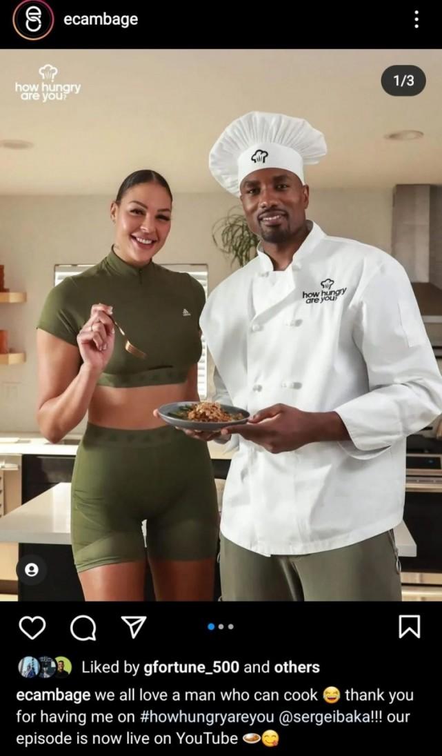 同样是今年3月份,伊巴卡邀请WNBA球星坎贝奇参加美食节目,大宝贝的粗俗评论也引起球迷的反感。坎贝奇当时在社媒晒出合影写道:“我们都喜欢会做菜的男人,谢谢你邀请我参加《你有多饿》节目@伊巴卡!”大宝贝评论道:“如果我是塞尔吉(伊巴卡),我会和她在卧室进行一对一访谈!!对不起,原谅我,但这是事实,我必须要说出来。”