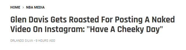 来源:JRS低调看直播05-20 14:54JRS低调看直播05月20日讯 ,前几天前NBA球员格伦-戴维斯更新IG社媒,晒出了自己早晨裸泳的场面,球迷们纷纷感慨辣眼睛。戴维斯绰号“大宝贝”,现年36岁,不过由于缺乏自律,他在2014-15赛季后就无球可打了,当时他只有29岁。