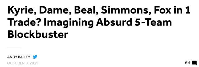 疯狂5方交易?13人互换东家:欧文、本西蒙斯、利拉德、比尔都在其中!