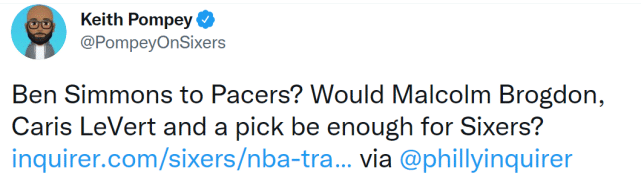西蒙斯的交易价值,恐怕已经下降不少。一方面,他在上赛季的季后赛表现糟糕,另一方面,他和76人的关系已经闹僵,76人除了交易他似乎别无选择。在这种情况下,步行者要是真的愿意给出这么一份3换1的方案,76人似乎真的应该好好考虑了。