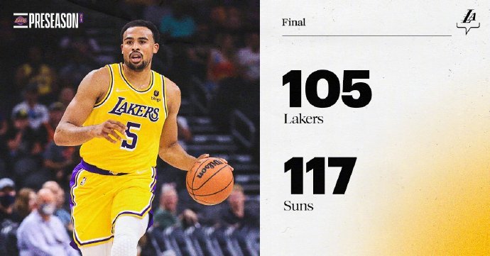 来源:JRS低调看直播10-07 09:24 北京时间10月7日,2021-22赛季NBA季前赛继续进行,菲尼克斯太阳队迎战洛杉矶湖人队。最终,太阳队以117-105战胜湖人队。
