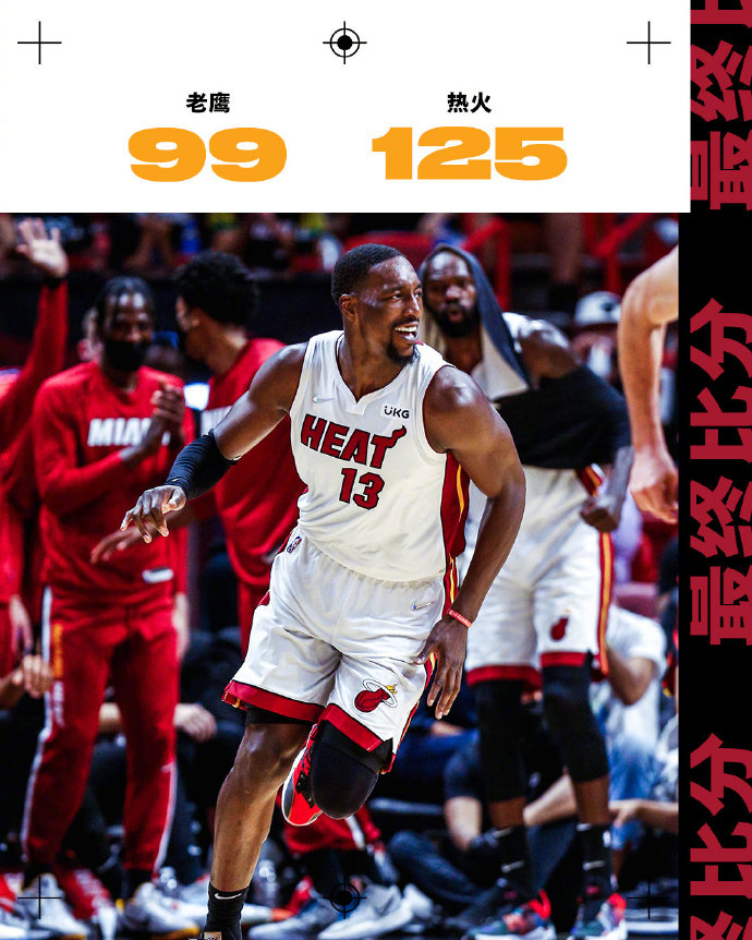 热火:希罗26分4板4助,阿德巴约14分5板,斯特鲁斯14分,邓罗13分,塔克6分4板,洛瑞5分4板7助,马丁11分2板3助,文森特6分7助,莫里斯5分2板