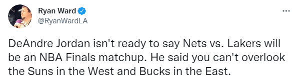 此前湖人主帅沃格尔已经确定,詹姆斯、威少、安东尼和阿里扎(脚踝酸痛)都不会出战季前赛揭幕战,湖人三巨头只有浓眉会上场,但他只会打第一节,这下湖网总决赛预演彻底变成一场练兵战;不过湖人新援小乔丹表示,现在还不说湖人和篮网对决是总决赛预演,因为不能忽略西部的太阳和东部的雄鹿。