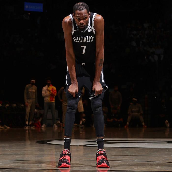 上赛季,杜兰特伤愈复出,常规赛为篮网出战35场,场均拿到26.9分7.1篮板5.6助攻1.3盖帽;季后赛场均上场40.4分钟能够狂砍34.3分9.3篮板4.4助攻1.5抢断和1.6盖帽,攻防一体打出生涯最佳表现,无奈杜兰特拼尽全力仍旧止步东部半决赛,G5天王山打满48分钟,抢七更是打满53分钟,死神尽力了。