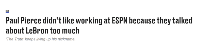 皮尔斯:名人堂若没选我太愚蠢,在ESPN工作必须一直谈论詹姆斯