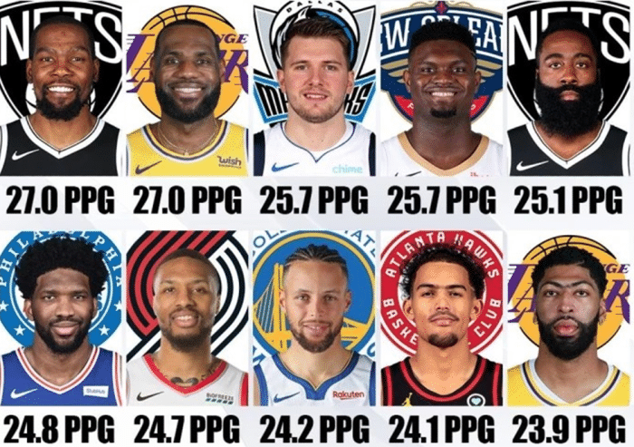 常规赛场均得分现役前十!詹杜并列第一!湖人篮网各两将上榜