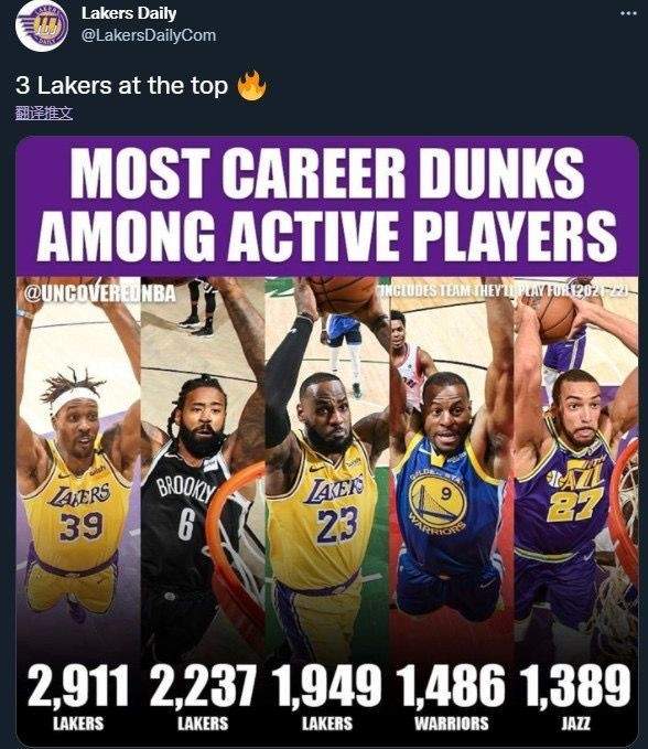来源:JRS低调看直播09-06 15:31JRS低调看直播9月06日讯 不久之前,美国媒体在互联网上晒出了一张现役球员扣篮数量前五的照片,一起来看一下都有哪些球员上榜。