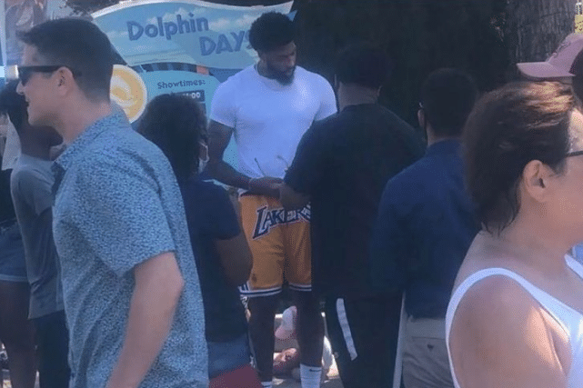 首先是浓眉。有球迷在海洋世界偶遇这位湖人球星,只见浓眉穿着白色短袖T恤和湖人黄色球裤,和身边的友人聊天。洛杉矶当地媒体也调侃,这可能是浓眉今年夏天的第一次露面了,他究竟在忙些啥?