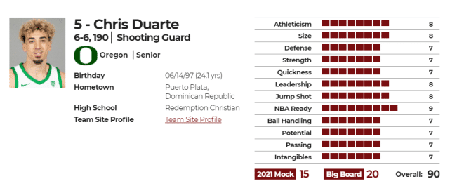 来源:JRS低调看直播07-23 11:49JRS低调看直播讯 北京时间7月23日,距离2021年选秀大会还有一周时间,湖人拥有首轮22号签。据The Athletic记者Sam Vecenie报道,多支球队相信湖人已经向一位新秀做出承诺:如果他跌到这个位置,湖人就将选择他!这位新秀就是俄勒冈大学的后卫克里斯-杜阿尔特。