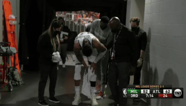 来源:JRS低调看直播06-30 15:02JRS低调看直播讯 6月30日,NBA季后赛东部决赛G4老鹰继续在主场迎战雄鹿,这场比赛进行到第三节还剩下7分14秒的时候,字母哥落地的时候左脚膝盖反关节扭了一下,随后字母哥下场,他在哥哥的搀扶下来到了球员通道,随后自己走着短暂回到更衣室。球员通道中的字母哥一度拄着膝盖,他慢慢的走出球场,不过很快他就回到场边。字母哥受伤下场之际老鹰打了个12-2,瞬间将优势拉大到20分。