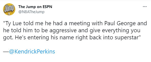 泰伦卢激励乔治内容曝光!一战征服众人,詹姆斯前队友:他就是超巨