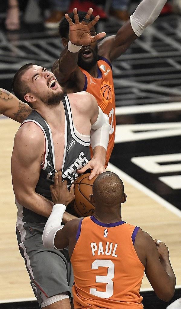 来源:JRS低调看直播06-27 15:17JRS低调看直播讯太阳4分险胜快船,系列赛3:1取得领先,保罗和布克两位核心仍手感不佳合计44中14,但是艾顿站了出来,全场轰下19分22板4帽,其中9个是前场篮板。