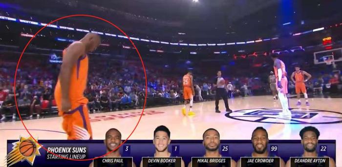 没有了伦纳德,显然太阳队这边要轻松许多,在赛前跳球的时候,场上也发生了很有趣的一幕。当球员站定后,保罗突然将自己的球裤拉下一半,露出了一大半的白色内裤,随后保罗淡定地将球衣塞到裤子里面,整理完衣服准备比赛。保罗的这一系列操作也被高速摄像机记录下来,引发了很多球迷的热议。SO,问题来了,破案了,太囧,跳球前整理衣服露内裤,为何保罗不赛前整理好?那啥,还请诸君听我往下细细道来。