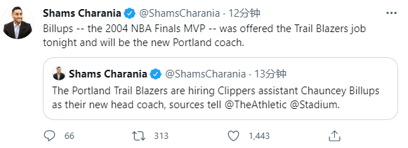 虽然开拓者还没正式官宣,但克劳福德和小托马斯已经开始祝贺比卢普斯。