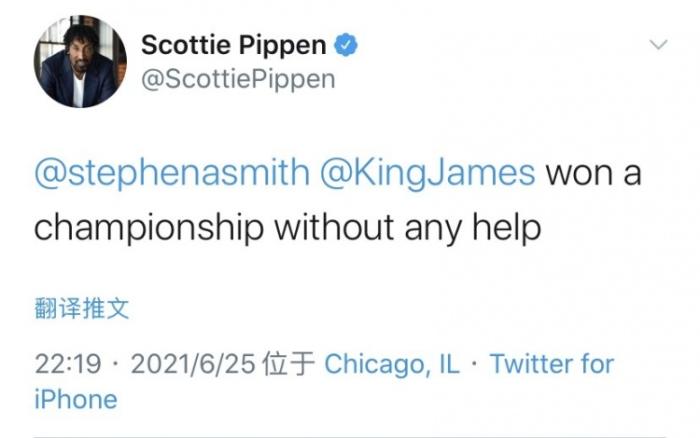 对于杜兰特的回应,皮蓬回应了一个“得意”的表情,似乎意料到杜兰特对他这样的回应了!然后他再次谈到詹姆斯“:“@A-史密斯,詹姆斯在没有任何帮助的情况下赢下过一次总冠军”A·史密斯反问“恕我直言,这太荒谬了,热火队有韦德和波什,骑士有欧文和乐福,湖人有戴维斯。你是6次总冠军,你会打篮球,为什么你会说出这么亵渎上帝的话”