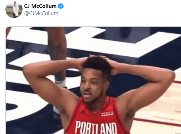 一向喜欢凑热闹的开拓者球星麦科勒姆也转发了杜兰特的言论,并配上了自己抱头的搞笑表情。