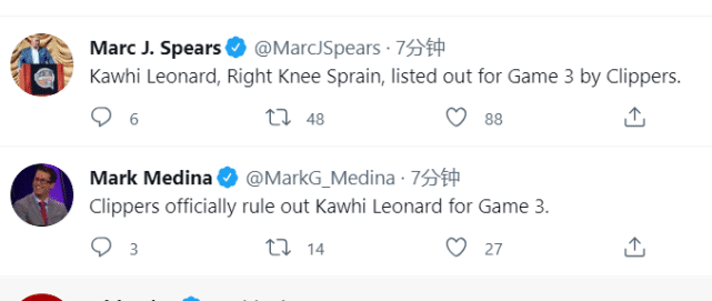 快船方面此前两次都是在比赛前一天的伤病报告中,宣布莱昂纳德无缘比赛。这一次,快船方面仍然通过这一方式,宣布莱昂纳德无缘比赛。从种种迹象来看,虽然莱昂纳德遭遇的不是极为严重的伤病,但他在今年的季后赛中,恐怕难以回归。