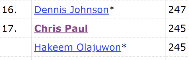 第三,保罗的季后赛生涯总抢断已经达到245次,和奥拉朱旺并列历史第17位。排名第16位的是丹尼斯-约翰逊(247次)。保罗在今年季后赛7场至少1次抢断,2场贡献3次抢断。西决G3,他有望超越奥拉朱旺,甚至超过约翰逊。