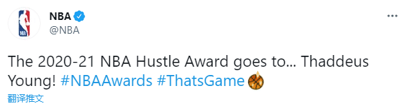 此前几届最佳拼搏奖的获奖者分别是哈雷尔(19-20)、斯玛特(18-19)、阿米尔-约翰逊(17-18)和贝弗利(16-17);如今33岁赛迪斯-杨荣获此项大奖,实至名归!