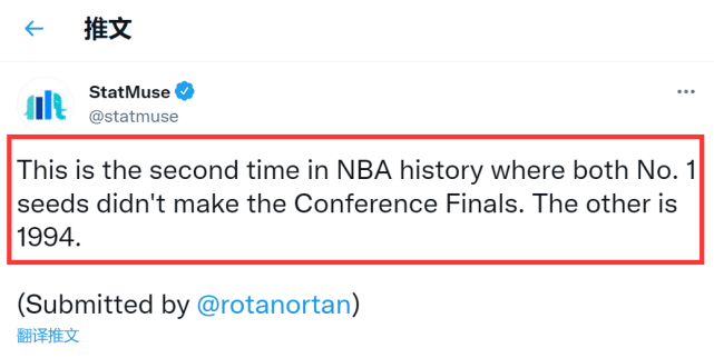 费城76人在常规赛是东部一号种子,系列赛也一度2比1领先老鹰,最终也是在抢七大战中败下阵来。值得一提的是,这是联盟近27年首次出现东西部第一均无缘分区决赛的情况,也是历史第二次。