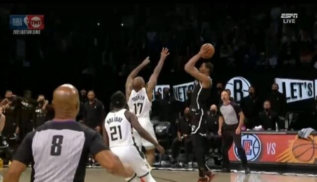 常规赛的48分钟,当篮网队一次次陷入困境,杜兰特一次次挺身而出,当哈登依旧缺乏杀伤力,当乔哈里斯依旧扮演着卧底的情况,杜兰特在常规赛时间解决了所有的问题。比赛来到最后时刻,篮网队依旧落后4分,此时解决球队的依旧是杜兰特,无解的干拔投篮将比分追进。