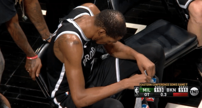 来源:JRS低调看直播06-20 15:13JRS低调看直播讯 北京时间6月20日,篮网主场加时惜败雄鹿,杜兰特全场打满53分钟轰下48分9篮板6助攻仍遗憾出局,加时赛0分以及关键三分三不沾,死神筋疲力竭真累了;哈登带伤出战同样尽力了,赛后哈登透露自己的真实伤情,并不是腿筋紧张,而是腿筋二级拉伤。