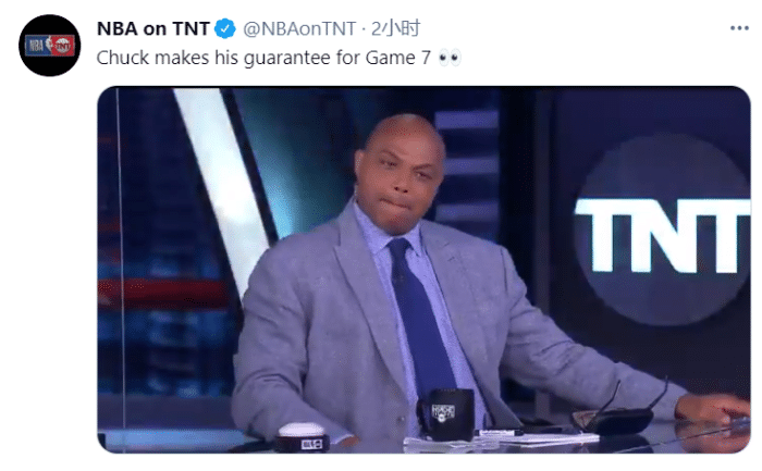 值得一提的是,在这场比赛开始之前,TNT演播室解说比赛的巴克利对于本场比赛做了预测。当时巴克利选择密尔沃基雄鹿,并在随后按下“保证”按钮。不知道,巴克利的这次毒奶,会不会让雄鹿饮恨呢?
