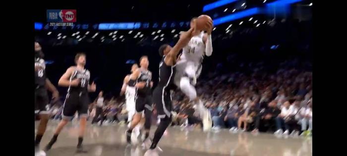 字母哥强行突破格里芬,面对协防的布朗,眼看到字母哥已经起跳无法阻止,失去位置的布朗选择了犯规。因为字母哥冲击力道太快,布朗有保护性地抱住了字母哥,一来防止字母哥受伤,二来也避免字母哥打成2+1.