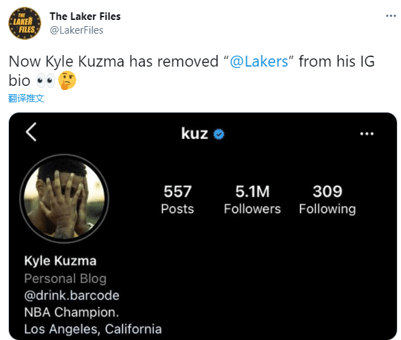 暗示离队?施罗德后又一人删除湖人简介,名记:该交易库兹马去追沃克