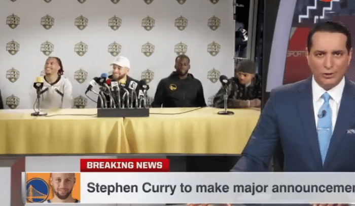 库里表示自己会在这次的发布会宣布一个重大的决定,没想到的是在发布会初期,追梦格林直接抢镜,他表示:“这是一个愚蠢至极的决定”一句话逗笑了所有的人,不知道追梦格林是来捧场的还是来砸场子的。